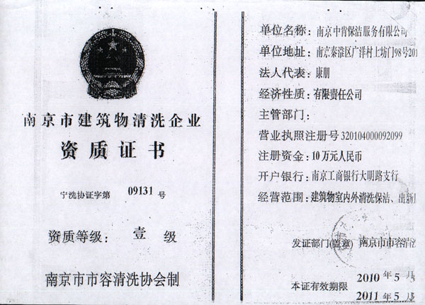 南京保潔公司注冊資金10萬元,是江蘇省家庭服務(wù)協(xié)會會員單位,江蘇省家政服務(wù)業(yè)分類執(zhí)行標(biāo)準(zhǔn)起草制定單位,先后被評為江蘇誠信服務(wù)先進(jìn)單位、南京是家政服務(wù)定點培訓(xùn)單位、南京市十佳建筑物清洗企業(yè)、南京市誠信示范單位、南京市鼓樓區(qū)三信三優(yōu)單位。董事長康朋是江蘇省家庭服務(wù)業(yè)協(xié)會副會長、江蘇省家政服務(wù)分類執(zhí)行標(biāo)準(zhǔn)主要起草人。
